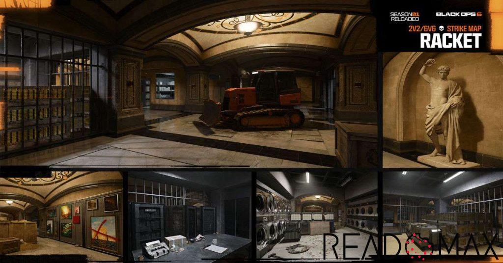 - Racket (2v2, 6v6): Set in an underground bank vault, this map is perfect for close-quarters combat.