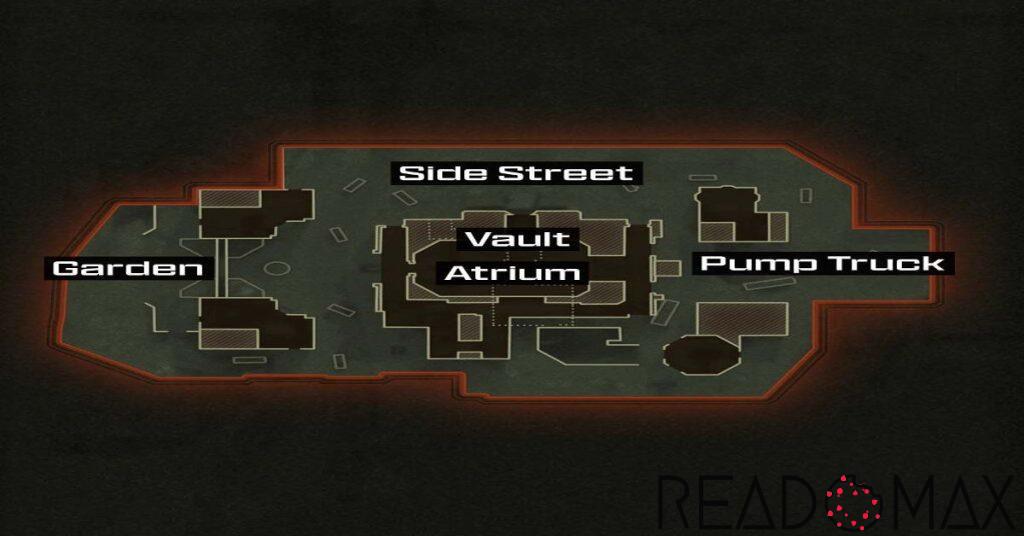 Vault offers a balanced mix of indoor and outdoor combat. Its central Atrium is the most contested area.