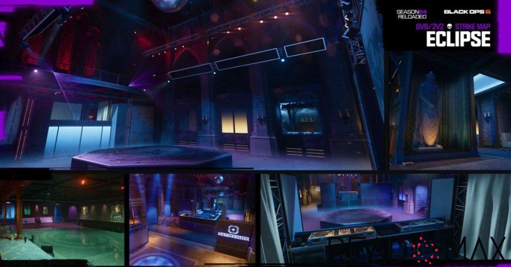 Arriving with Season 4 Reloaded update, Eclipse is an Avalon undergrounnightclubub map. The electric neon signs, the dark corridors, and the open dancefloor provide high-paced firefights.
