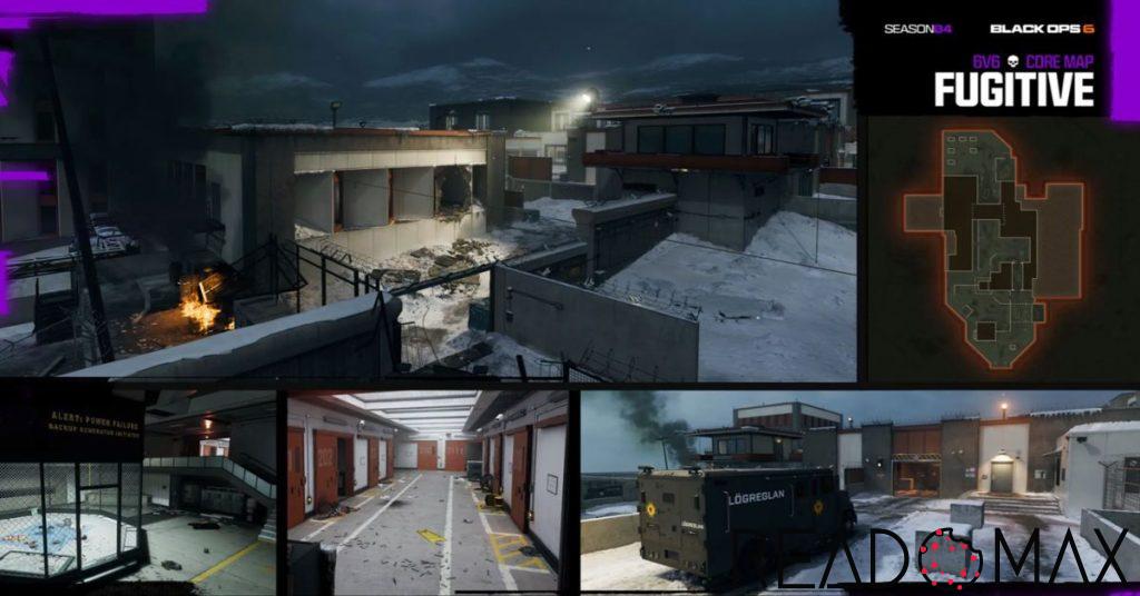 Fugitive is set in a CIA black site prison located in Iceland, where narrow hallways are combined with open space to provide numerous different fighting interactions. It is directly connected to the Season 4 storyline, with ziplines proving the ability to move fast on the map. This map will challenge players and map sense through its design, being perfect when it comes to an aggressive playstyle.