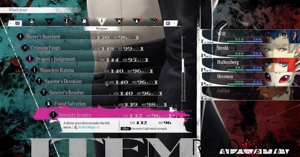 - A vital tool for healers, the Serenity Sceptre boosts Light-based spells like Hama, helpful for early battles with undead foes. The Healer archetype, who wields maces, benefits from the additional magic power, making it a strategic choice in early game.