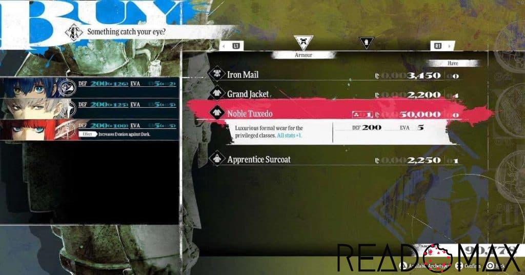 - The Noble Tuxedo is one of the most balanced pieces of armor with a stat boost across all attributes. Although expensive, it’s an investment that benefits players using a wide range of archetypes in their Metaphor ReFantazio game strategies.